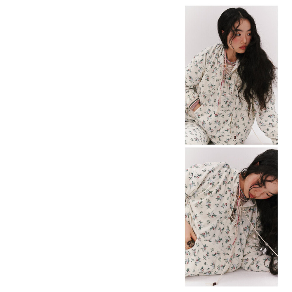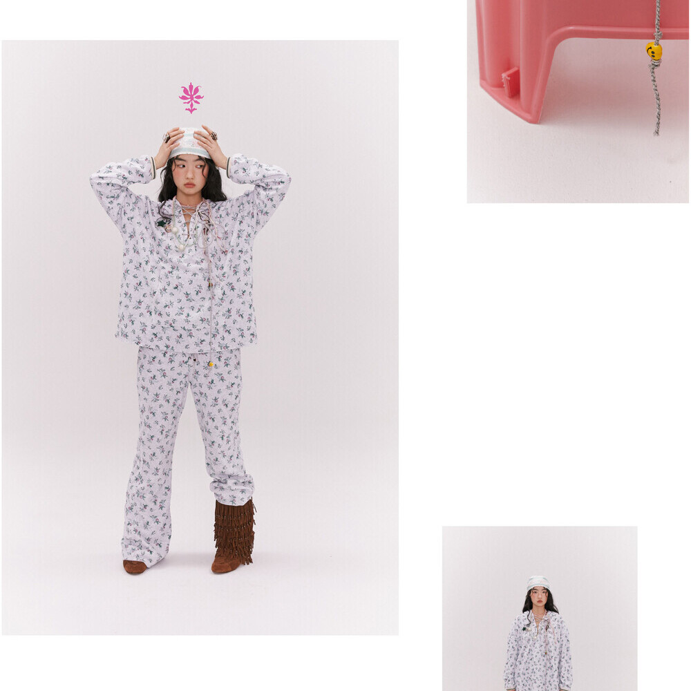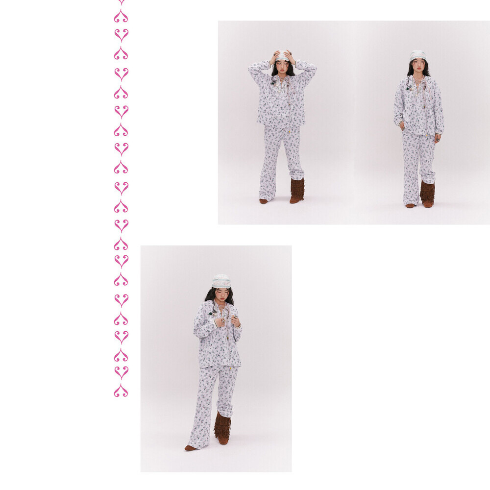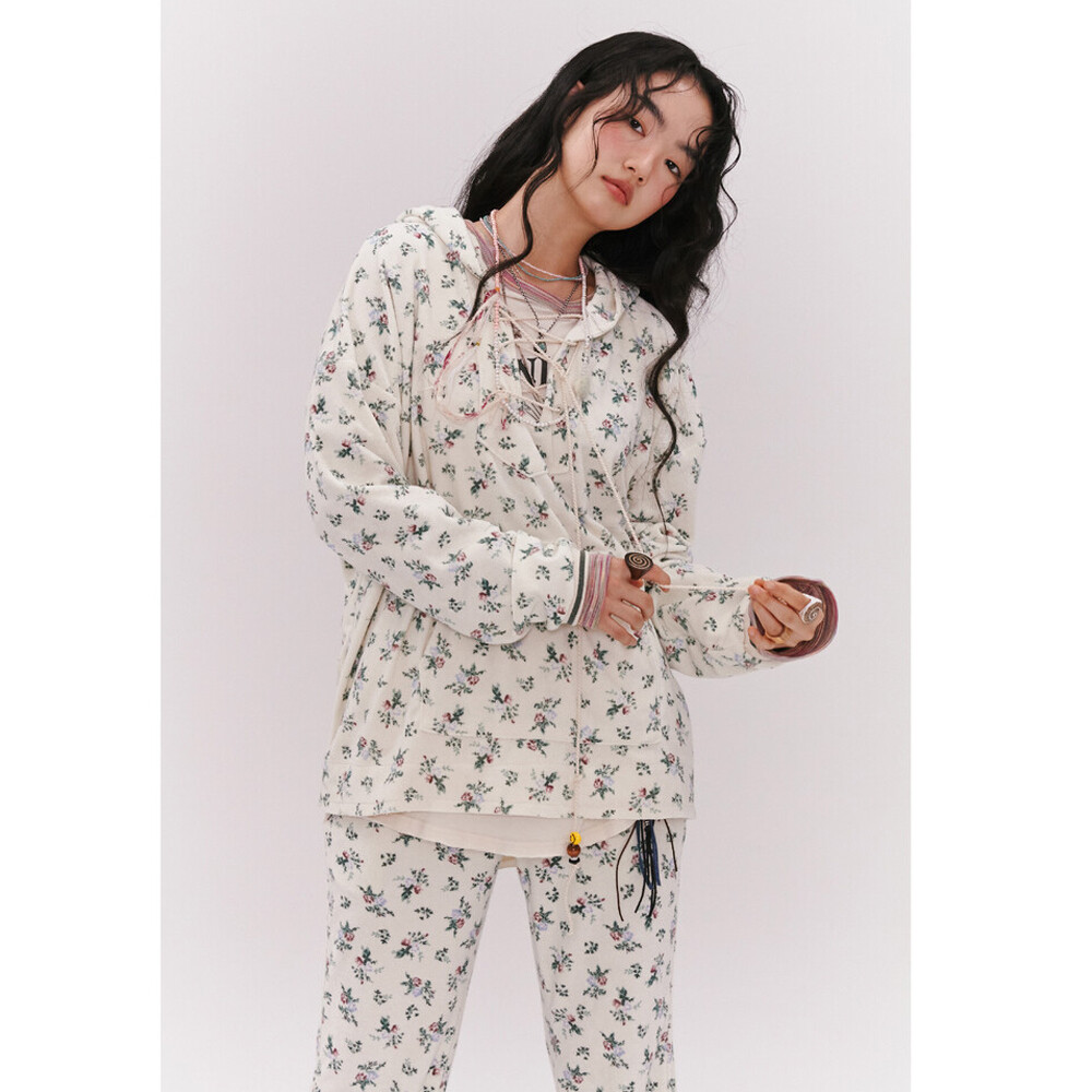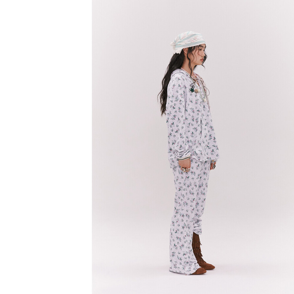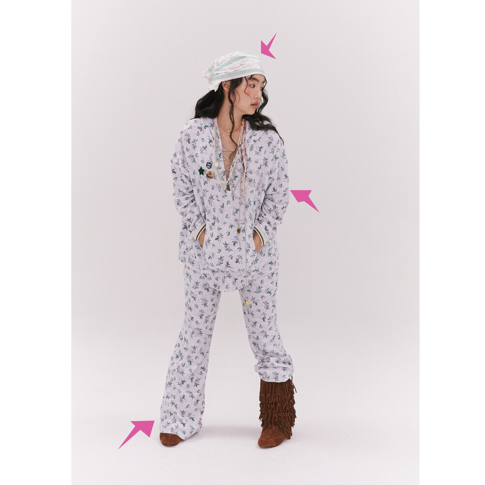 Floral Terry Boot-cut Pants (2 colors)